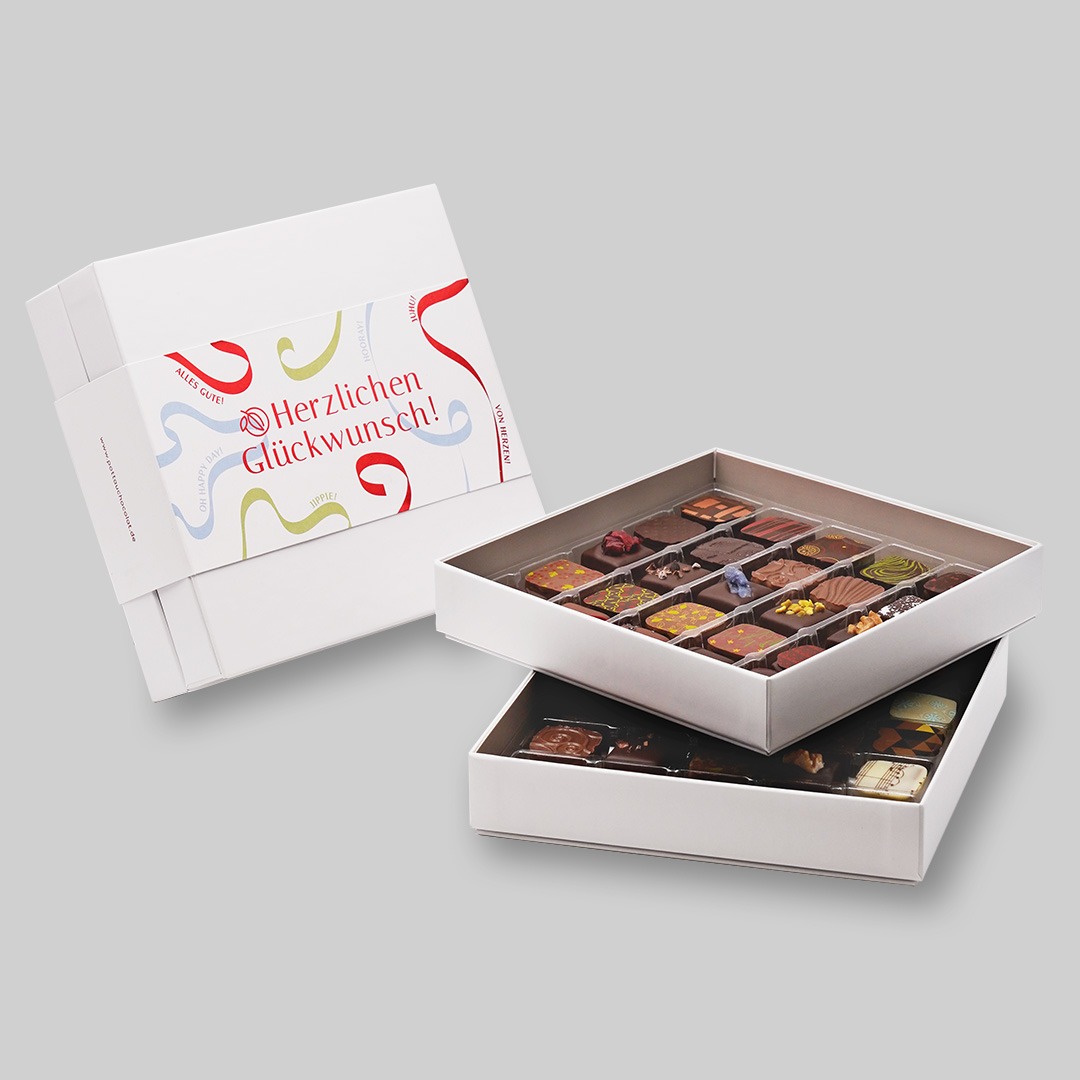 Pralinenbox „Herzlichen Glückwunsch“ – Süße Grüße für besondere Anlässe