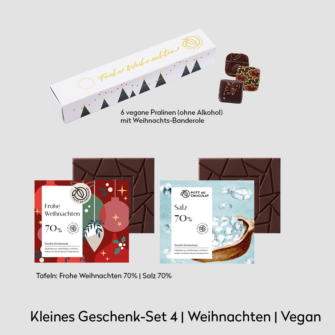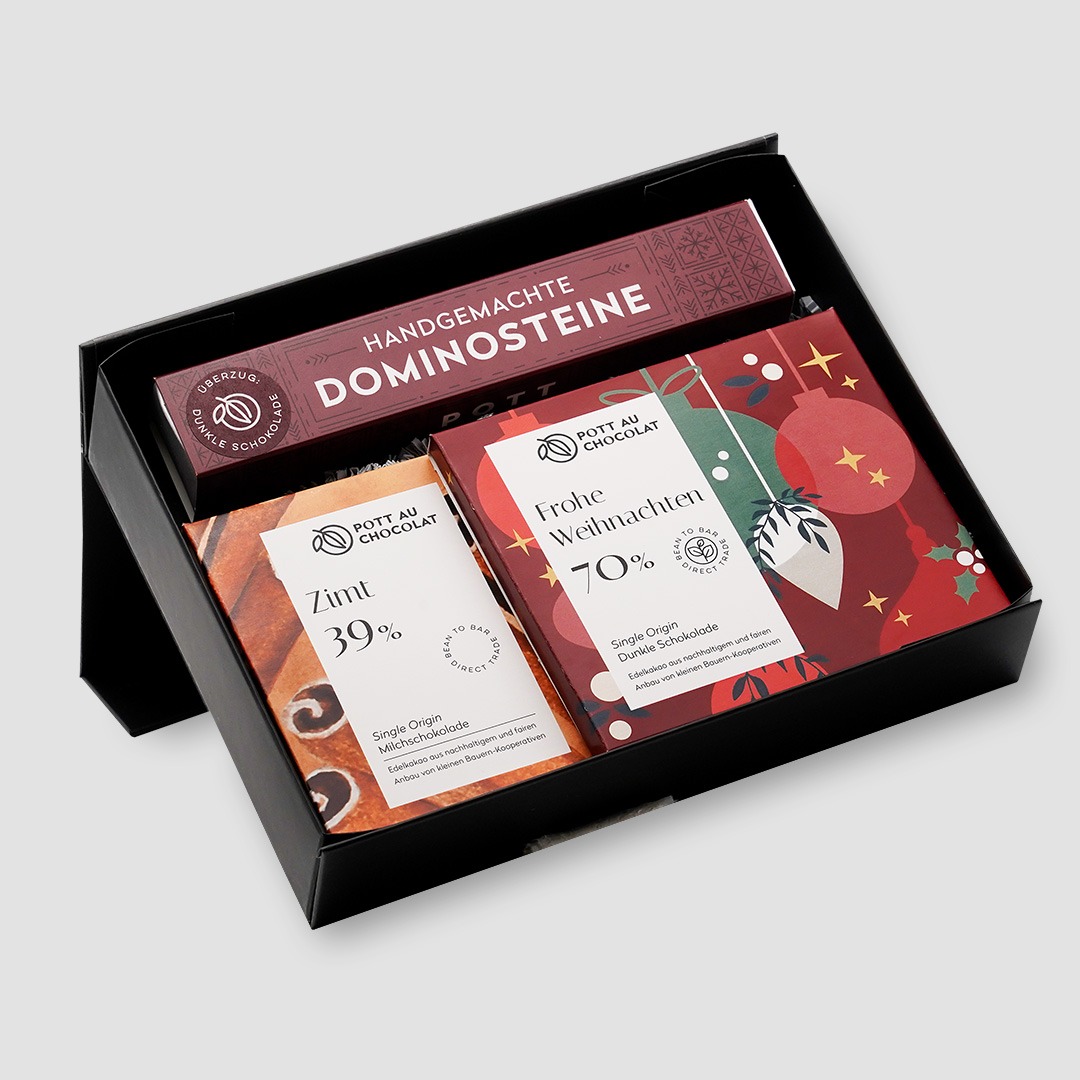 Ob als edles Mitbringsel, als persönlicher Gruß oder als stilvolles Firmengeschenk: Dieses Set sagt „Frohe Weihnachten“ auf die schönste Art – mit echter Schokolade aus unserer Dortmunder Manufaktur.