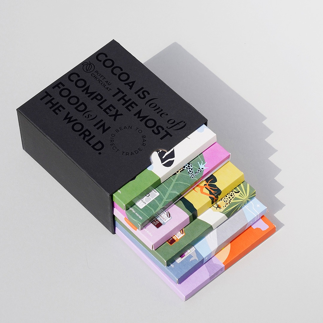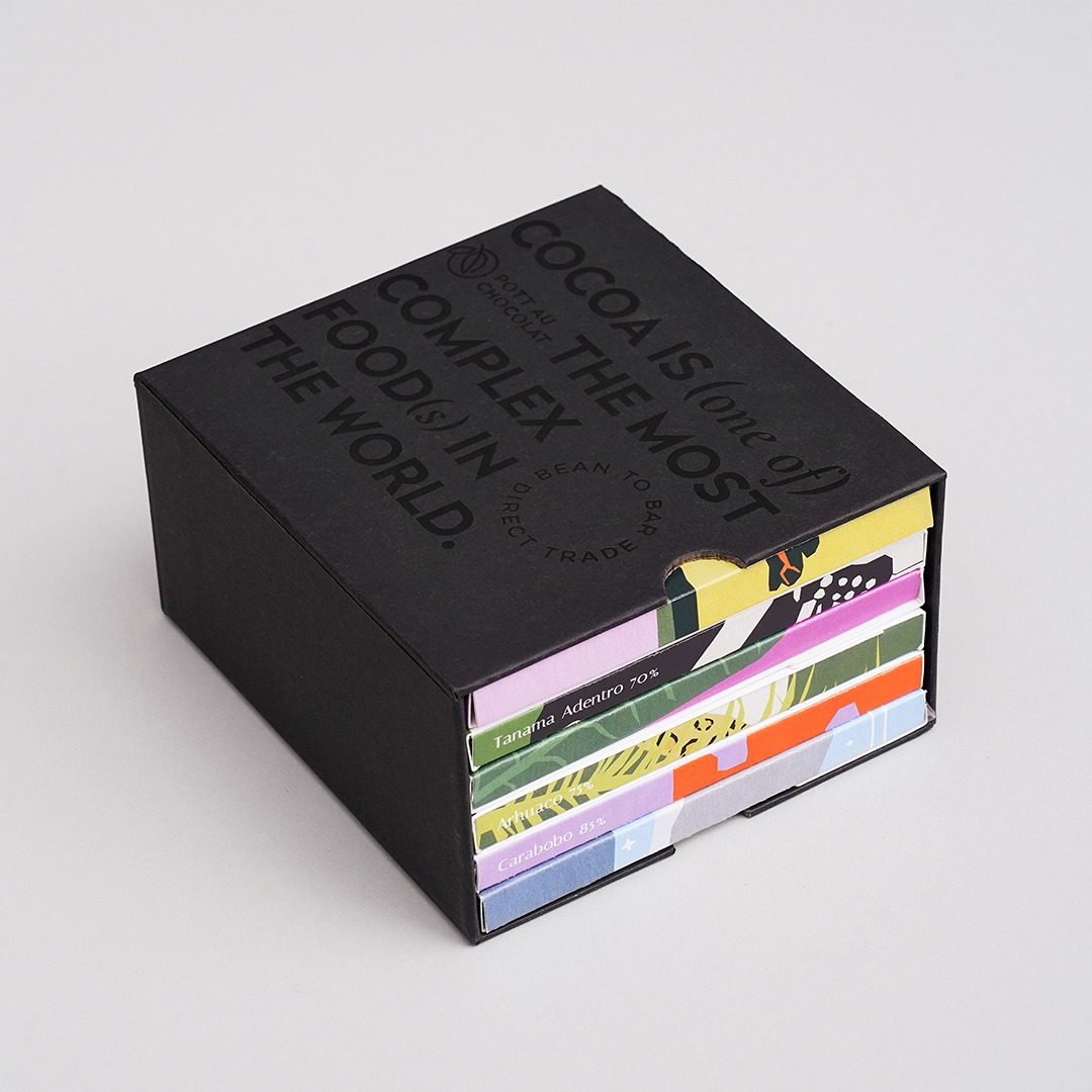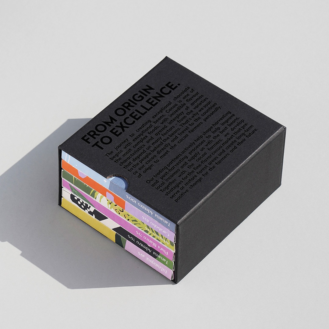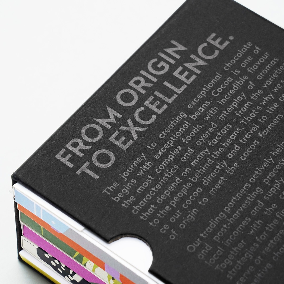 Ein starkes Produkt überzeugt nicht nur inhaltlich, sondern auch visuell. Die Mix and Match Chocolate Box bringt beides zusammen: hochwertige Tafelschokolade und ein elegantes Design. Der schwarze Geschenk-Schuber verleiht dem Set eine moderne Premium-Anmutung und macht es zu einem Produkt, das sowohl geschmacklich als auch optisch begeistert.